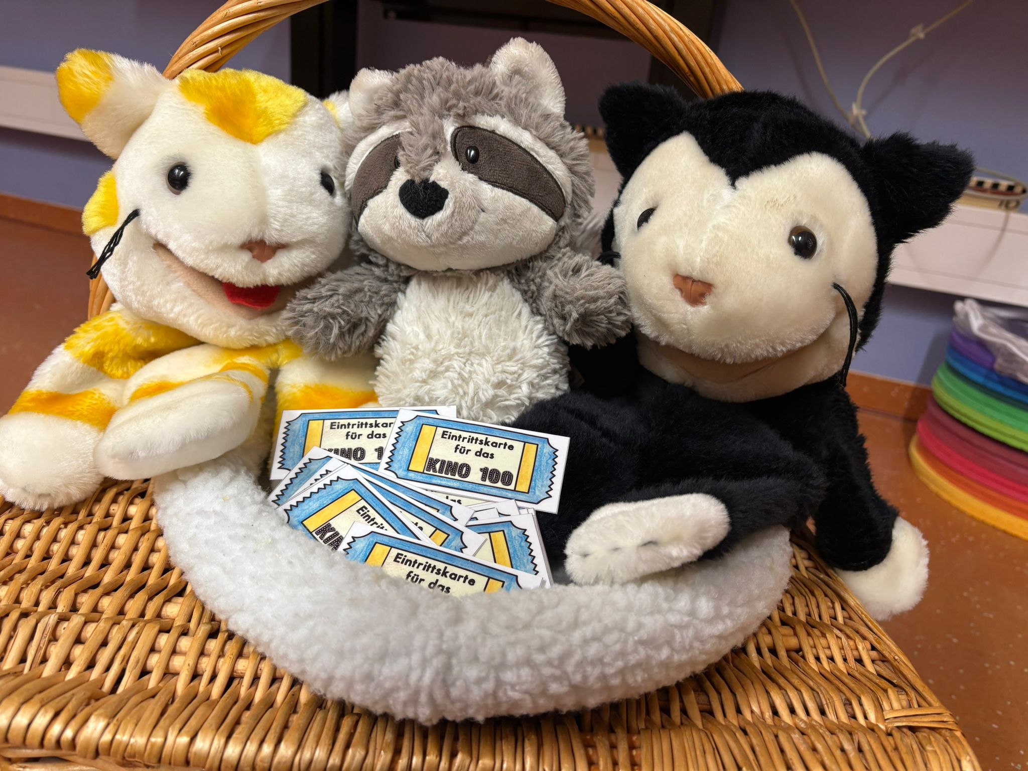 Gemeinsam luden die Klassentiere Mimi, Mo und Willi zu einer kleinen Filmvorführung im Kino 100 ein.