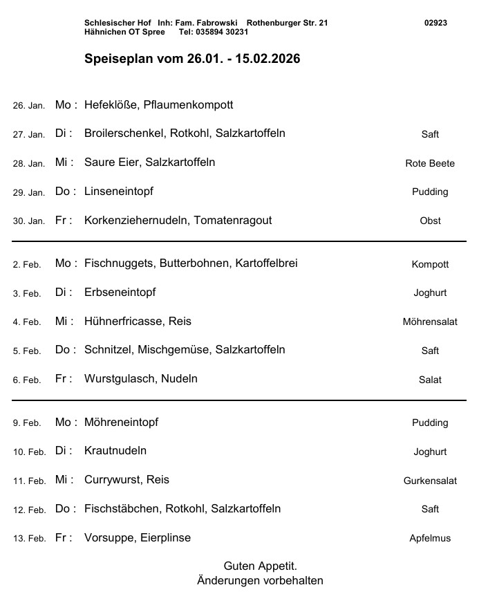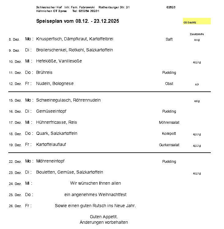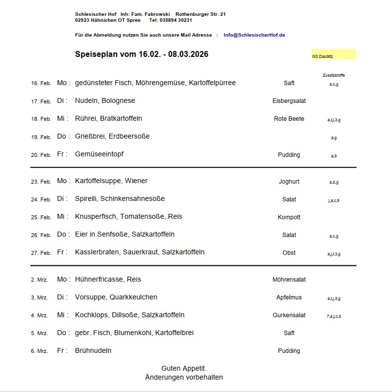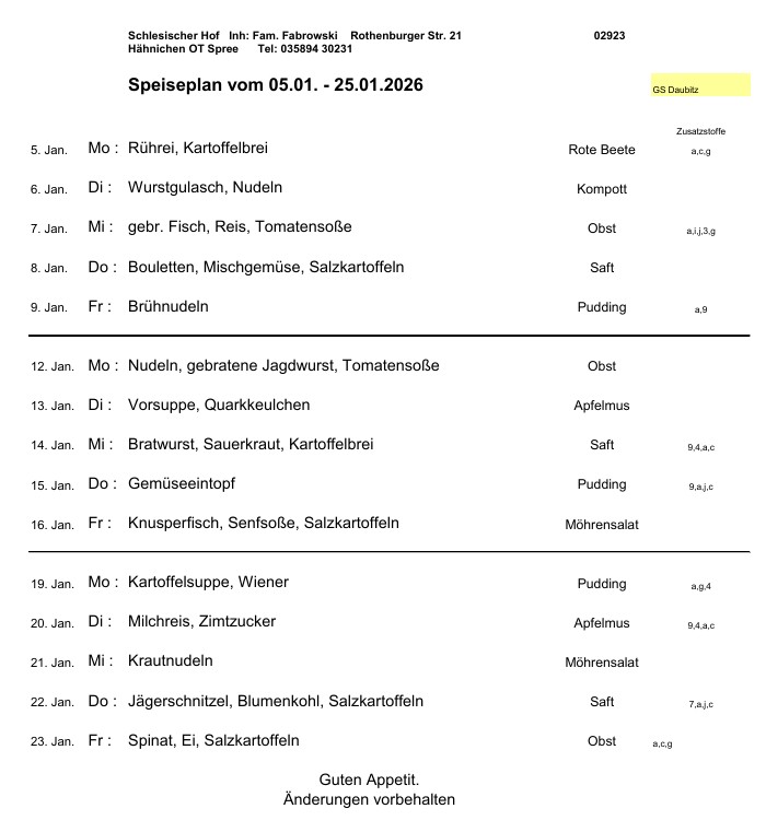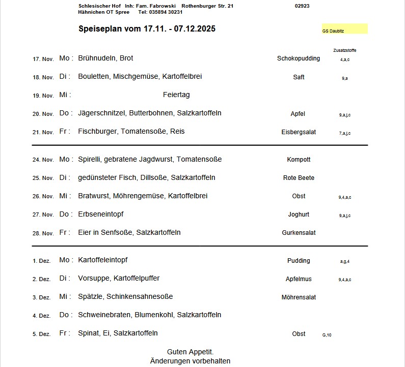 Die Einstellung des Speiseplanes ist erst möglich, wenn wir den Plan von Fa. Fabrowski bekommen.