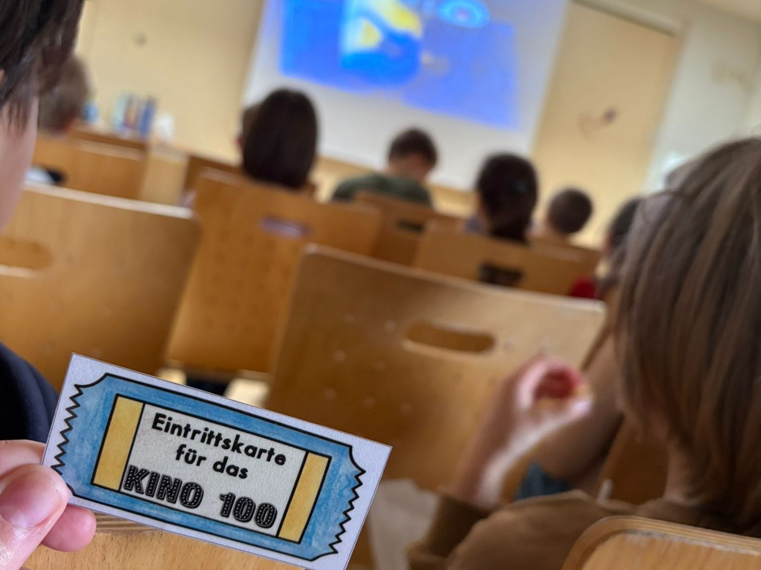 Gemeinsam luden die Klassentiere Mimi, Mo und Willi zu einer kleinen Filmvorführung im Kino 100 ein.