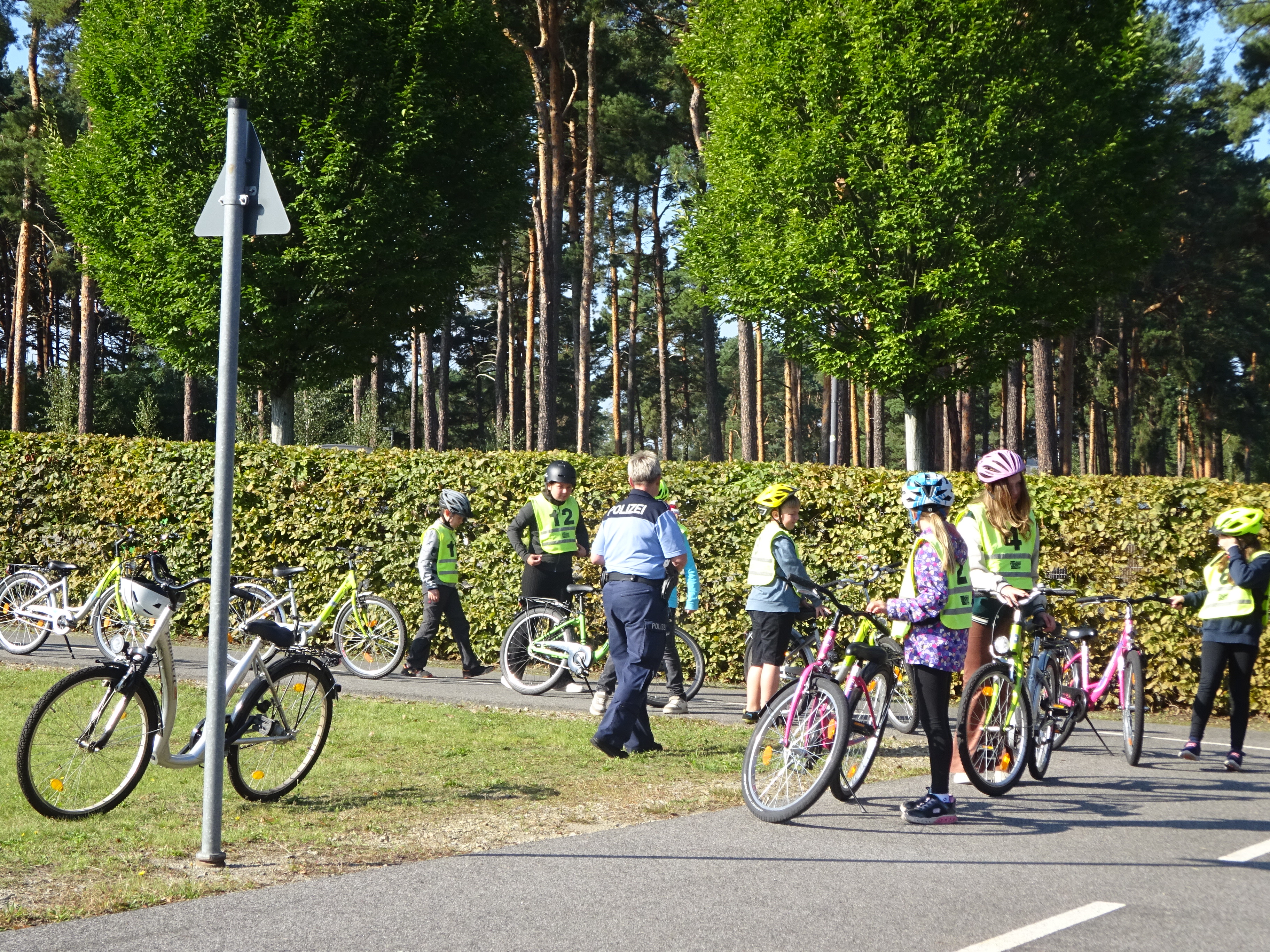Den Abschluss bildet die Fahrradprüfung, bei der die Kinder ihr erlerntes Können unter Beweis stellen.
