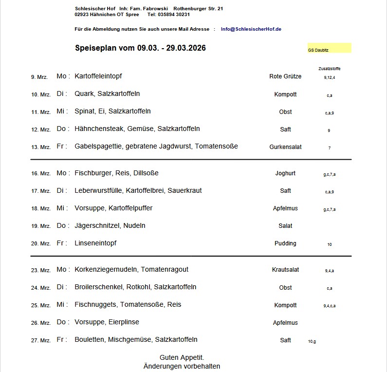 Die Einstellung des Speiseplanes ist erst möglich, wenn wir den Plan von Fa. Fabrowski bekommen.